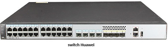 Sempre és de marca Huawei. En les primeres boques es connecten els punts d’accés, i les darreres boques són les destinades a la interconnexió amb el router i/o amb altres conmutadors. En aquest switch no es poden connectar ordinadors.